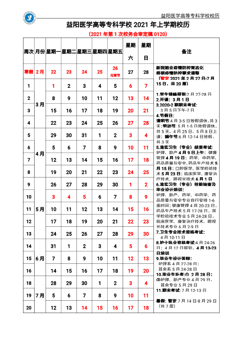 2021-2022学年第一学期校历