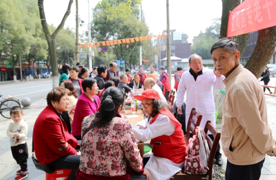 原来,这是益阳医专老干部学雷锋爱心义诊的活动现场。此次活动由校工会举办,校党委委员、工会主席冯灿霞出席并参加活动。该活动一经离退休党总支支委提议,便有许多的老同志踊跃报名,根据老同志专业特长组建了由内科、外科、中医科、五官科、妇产科组成的专家团队,为市民提供义诊服务,免费为市民量血压、测视力,听诊、问诊,提供优质的健康咨询和诊疗服务。市民们兴致勃勃而来,满心欢喜而去。整整一个上午,白发苍苍的老专家们忙得不亦乐乎,甚至连水都顾不上喝一口,当被问到累不累时,85岁的朱嗲呵呵一笑:“不累呢,老有所用,病友们愿意相信我们,能为他们服务,高兴得很!”