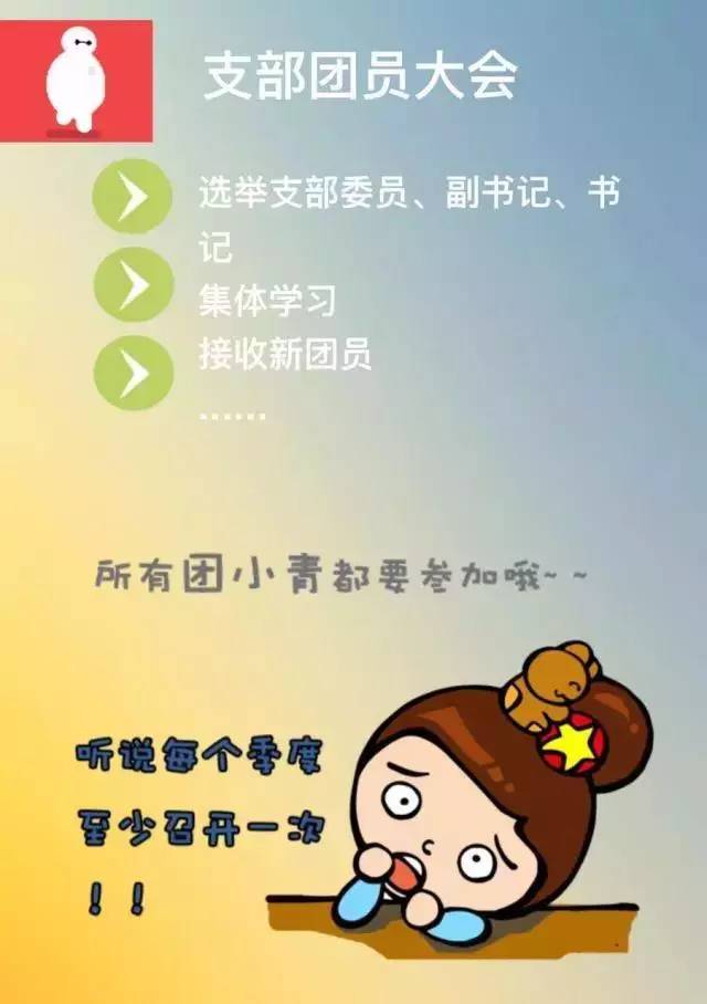 支部大会是指由团的支部委员会召集的支部全体团员参加的会议。支部大会又称支部团员大会, 是团支部的最高领导机构, 在团支部中享有最高决策权、选举权和监督权。支部大会一般每季度召开一次, 根据工作需要可随时召开。
