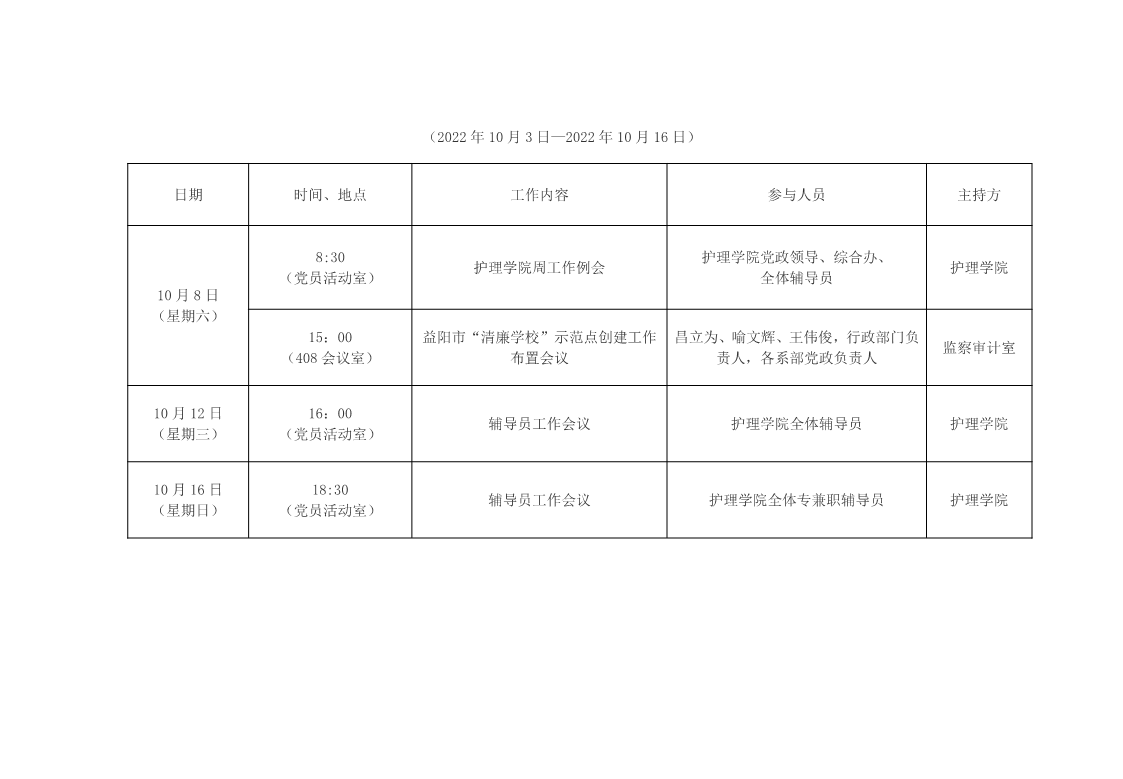 护理学院2022年下学期第7-8周主要工作安排表