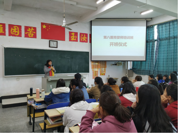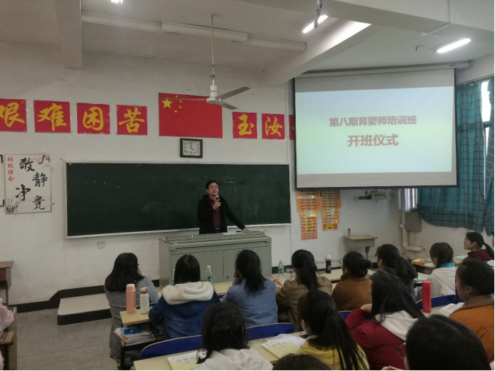 2018年11月22日下午,益阳医专护理系第8期育婴师培训班开班仪式在一教学楼T1教室召开,继续教育部陈明雄主任、护理系易淑明副主任及班主任刘志攀老师一起参加了开班仪式,陈明雄主任和易淑明主任分别代表校继续教育部和护理系作了重要讲话。