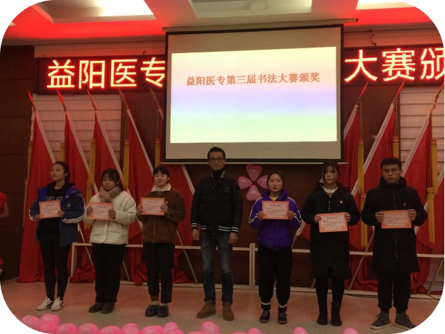 2018年12月13日中午,益阳医专第三届书法大赛颁奖仪式在学术报告厅隆重举行。校长助理范珍明,学工处处长喻文辉,护理系党总支书记陈西玲,学工处教育管理科科长肖学,护理系全体辅导员及班主任代表,各班学生代表250人出席了表彰大会。