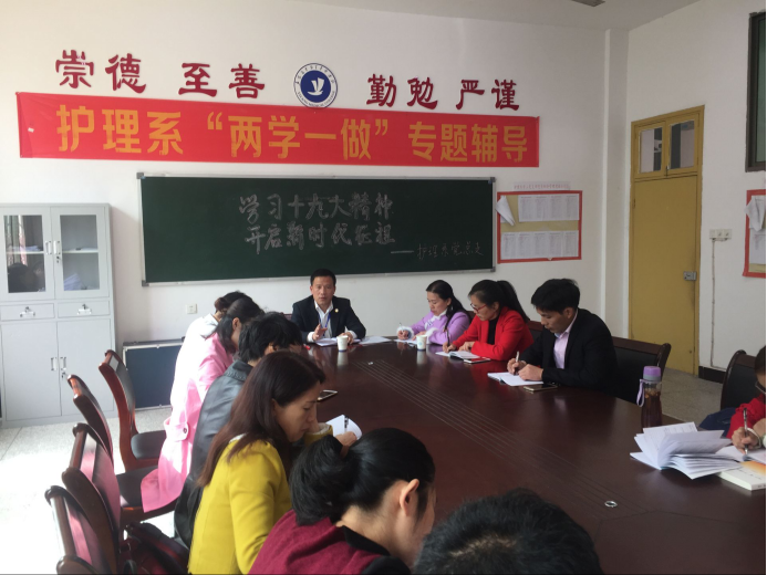 2017年11月8日下午,护理系党总支全体党员在护理系会议室开展了“学习十九大精神,开启新时代征程”主题党日活动,学校纪委书记郭勇干参加活动并做十九大精神专题宣讲报告。