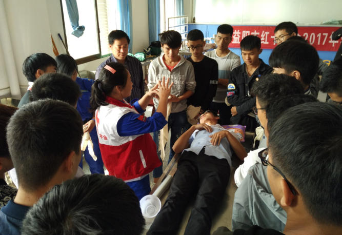 为增强男护的专业特色,提高男护的专业技能,打造男护品牌特色,10月28日至29日,护理系邀请益阳市红十字会工作人员走进学校,对康雅男护班以及17级男护班的51名学员开展应急救护知识培训。