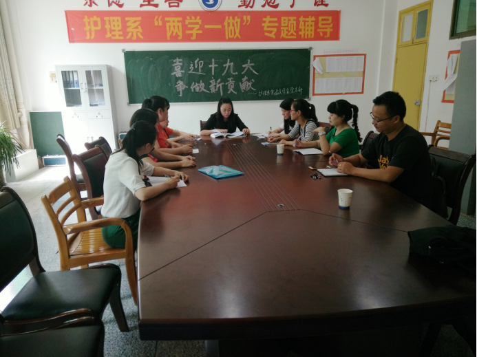 2017年9月26日上午,护理系党总支学生党支部全体党员在护理系会议室开展了主题党日活动,主题为“喜迎十九大,争做新贡献”。会议由学生党支部书记汤黎主持。