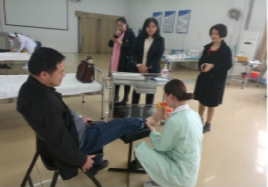 第三轮考核后徐静被选做现场右踝关节包扎操作展示