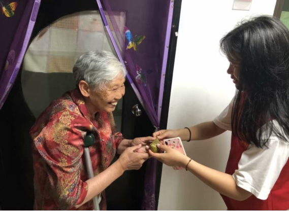 志愿队队员将爱心粽子送到重阳老人院