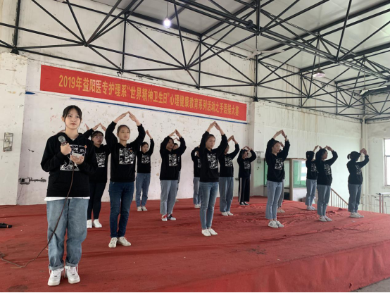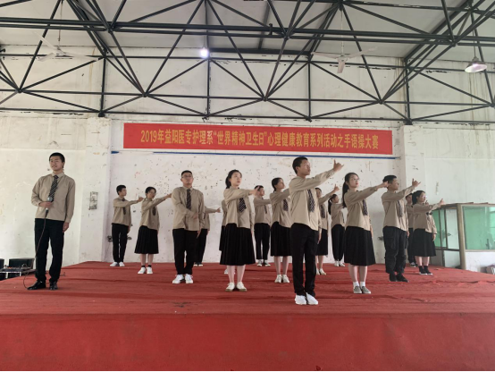 为宣传普及第28个世界精神卫生日,10月10日中午,益阳医专护理系在一食堂三楼举行以 “心理健康社会和谐,我行动” 为主题2019级新生手语操比赛。