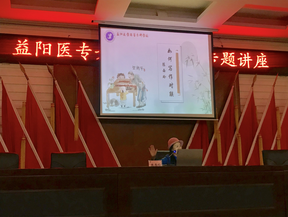 为夯实学生的文化知识基础,弘扬优秀传统文化,培养德智体美劳全面发展的素质型医学人才,11月20日下午,益阳医专护理系在学术报告厅举办 “如何书写楹联”专题知识讲座。护理系党总支书记夏琼琼、护理系全体班主任辅导员及全校近300名学生代表参加。学生工作处处长陈西玲受邀主讲。