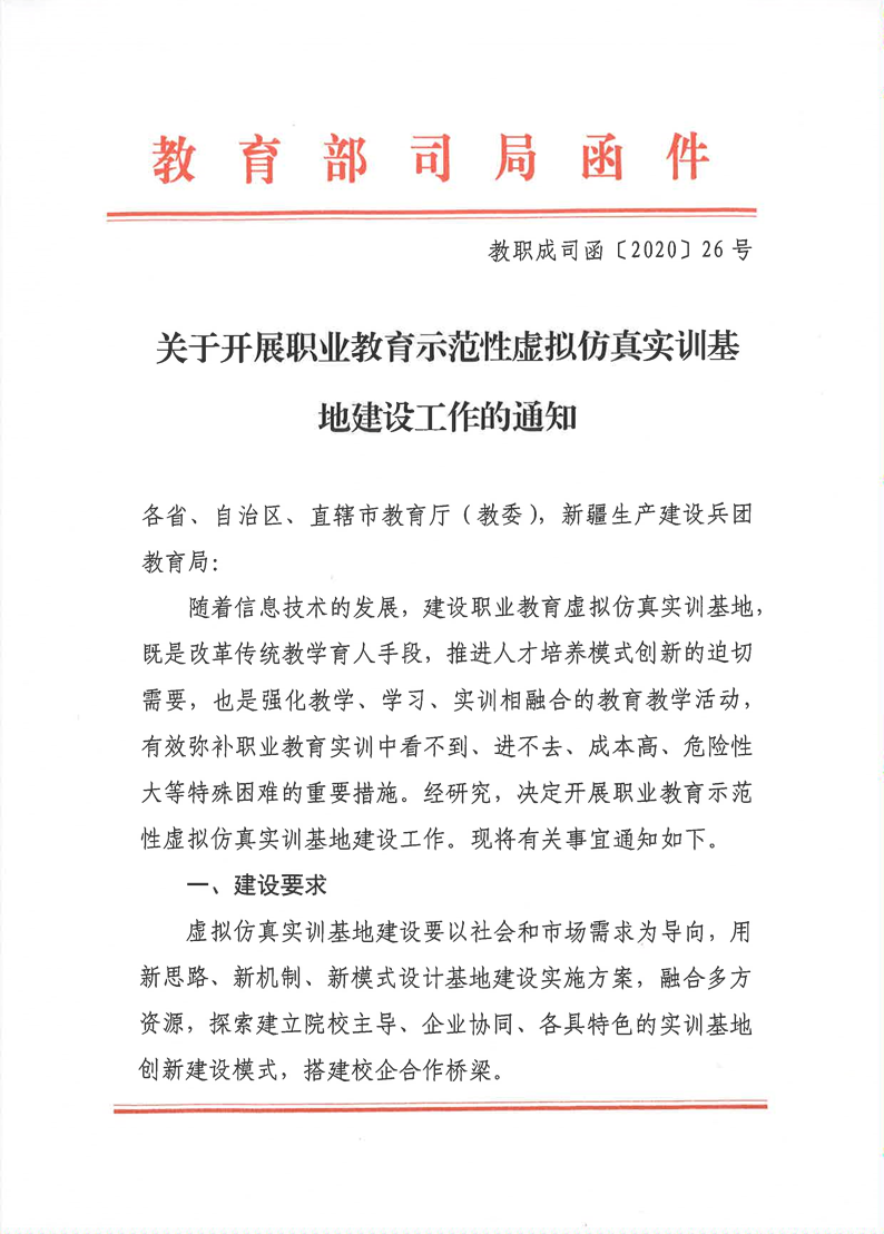 关于开展职业教育示范性虚拟仿真实训基地建设工作的通知
