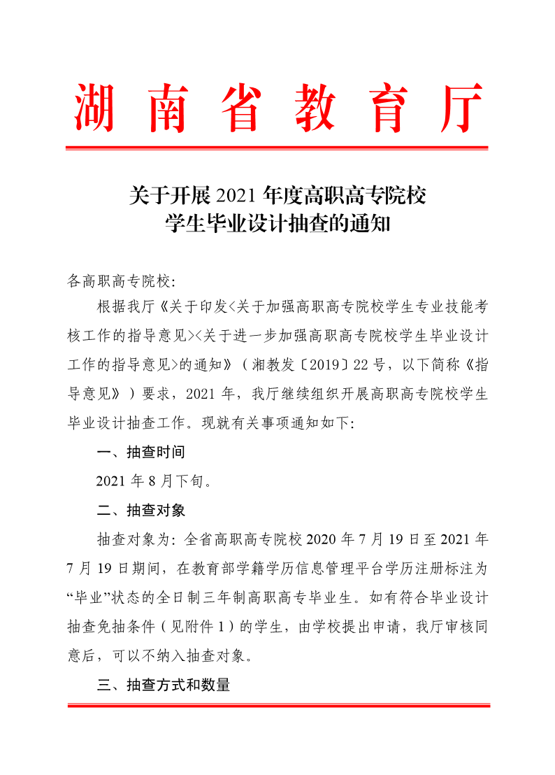 关于开展2021年度高职高专院校学生毕业设计抽查的通知