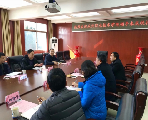 2018年12月17日,永州职业技术学院院长助理唐陶富、医学影像和医学技术系主任黄祥国、副主任桂重阳等一行来我校对接医学检验技术专业国家教学资源库的建设与推广应用工作。我校副校长刘高华、教务处处长傅学红、基础医学部检验系主任刘伏祥、副主任阳泽华、综合办主任徐群芳、病原教研室主任曾凡胜以及部分检验专业老师参加了会议。
