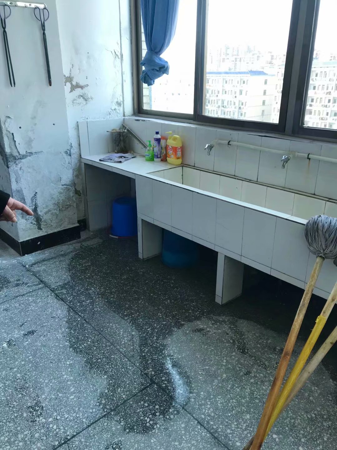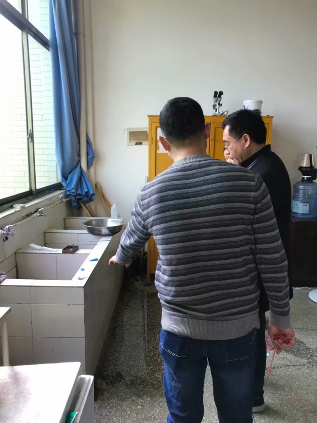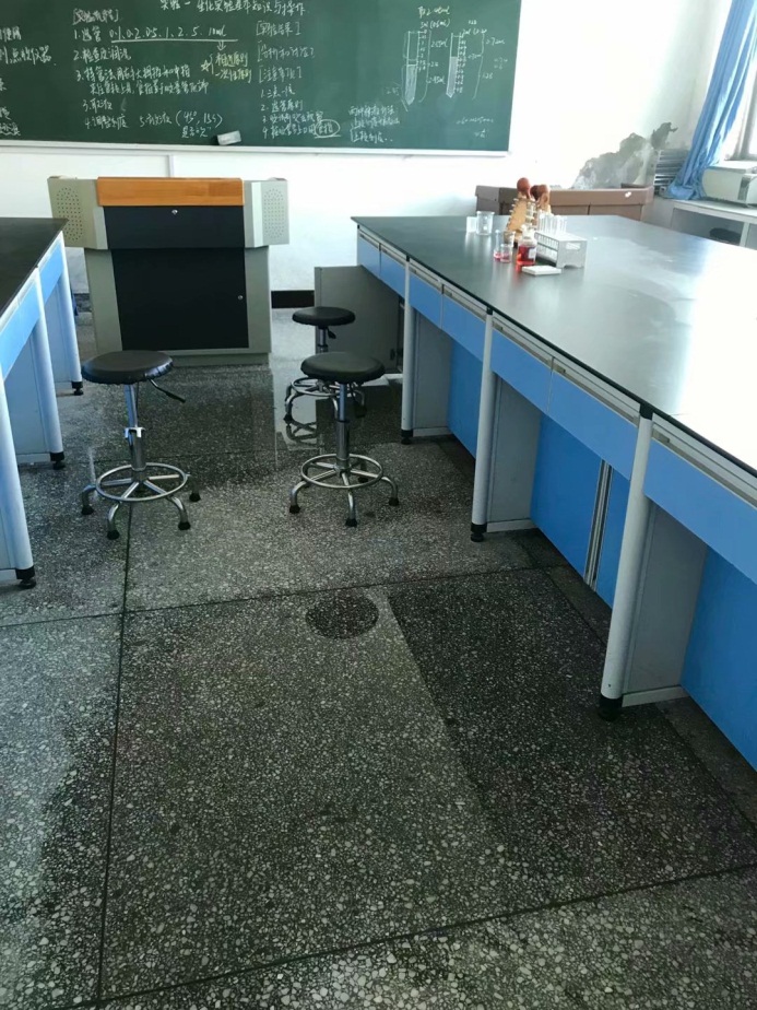 1.电线、电路和房屋漏水渗水情况。经过检查,电路、开关、插座均安全性能良好,无漏电现象。但生理、病理和生化的部分实验室存在墙体严重渗水(五楼背面生化第四实验室)、水池漏水及地板渗水现象,这些情况在此前已经向后勤报修。