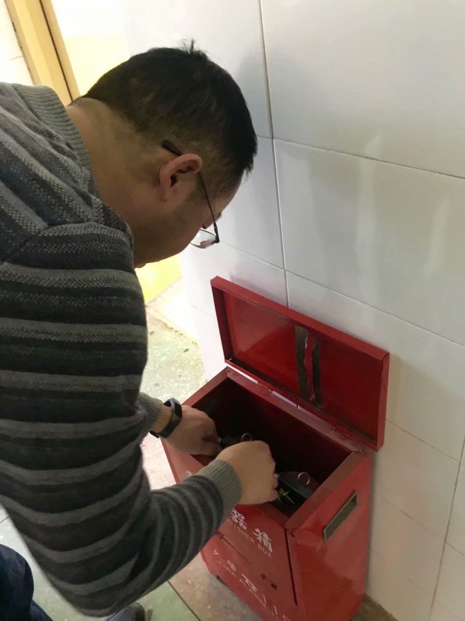 3.防火问题:实验室走廊内的灭火器,准备齐全,陈列有序,后勤最新在3月1日进行了检查。