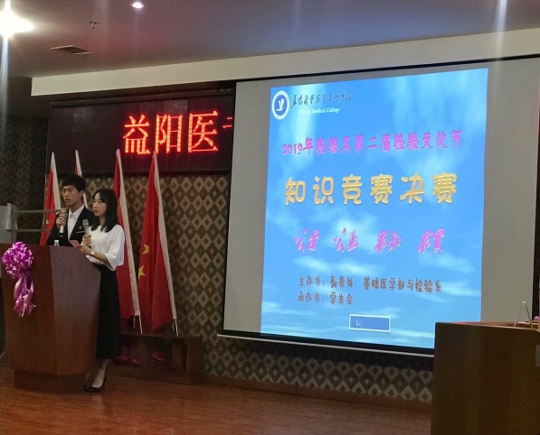 为了弘扬医学文化和检验同学们的基础知识掌握情况、帮助同学们巩固所学知识、营造更好的学习氛围,我系于2019年3月27日晚6点,在附属医院学术报告厅隆重举行“第二届检验文化节知识竞赛”。基础(检验)系副主任阳泽华、综合办主任徐群芳、检验教研室主任王进、检验系辅导员和相关任课老师担任评委工作。团委、学工部、班主任以及2015、2017、2018级共400余名师生共同观看了比赛。