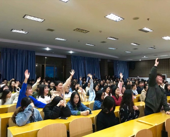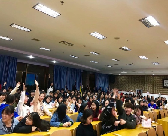 第一个环节是小试身手,各小组成竹在胸、势均力敌,都以出色的表现赢得了满分,取得了开门红。第二、第三环节分别是乘风破浪和再接再厉,由各参赛小组使用抢答器进行抢答,各参赛选手争先恐后,你追我赶,都将状态快速提升到了最好。第四个环节终结挑战,可能由于精神太过集中,出现了提前抢答的失误情况,从而被扣分。随后,比赛进入最后一轮——一锤定音,紧张而又刺激的风险答题,可怜的Ig队本来一直遥遥领先,经过几轮风险抢答,辛辛苦苦赚下的分数,立马跌入谷底,期间悬念多多,机关多多,让人揪心和惋惜。在接下来的观众互动环节中,观众们也热情高涨,积极参与抢答,瞧同学们那高高举起的右手,你就知道现场有多么火爆!
