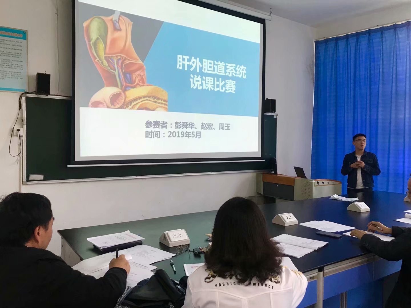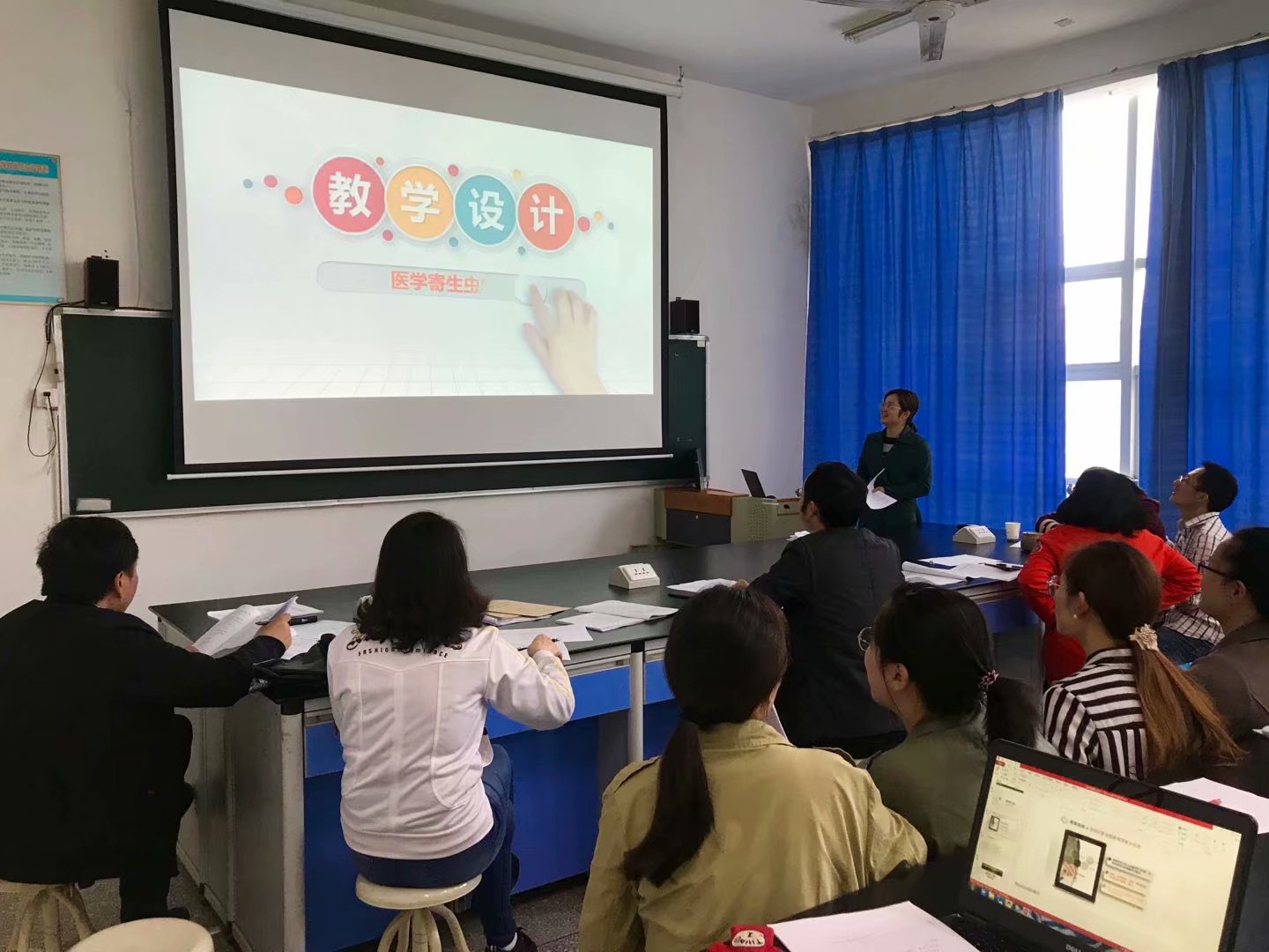 比赛开始,刘伏祥主任首先宣读了本次竞赛规则、比赛内容和评分要求,然后各教研室团队代表通过抓阄的方式决定场次先后。第一个上场的是生化教研室的周牡娜老师,她知性霸气,底气十足,设计的《脂类代谢》新颖流畅,内容科学、规范,而且对现代教学手段的运用熟练恰当;第二个上场的是解剖教研室的彭舜华老师,设计的内容是《肝外胆道系统》,通过病例导入,结合临床意义进行分析,教学设计特别注意增强课堂吸引力和趣味性,课后拓展有方,话题开放;然后是生理教研室的李许老师,他的《呼吸生理》教学设计充分利用现代多媒体教学手段,教学过程设计层次分明,重点突出,难点把握准确,分析清楚,而且文字明了简洁;梁莎老师设计的《医学寄生虫》,台风自然随和、内容娓娓道来,给人留下了深刻印象;何露对《病原生物学与免疫学》教学方法的设计,内容完整,条理清楚,格式美观整齐。每位主讲教师讲完,傅学红处长、刘伏祥主任均对比赛做了精彩点评,观摩教师也开展了热烈的教学研讨,整个赛程程序井然,评委小组全程认真而客观地评分。最后经过激烈角逐,生化教研室周牡娜老师获得本次大赛一等奖,李许、何露老师获得二等奖,彭舜华、梁莎老师获得三等奖。根据初赛结果,周牡娜、李许、何露将择优推选参加校级决赛。