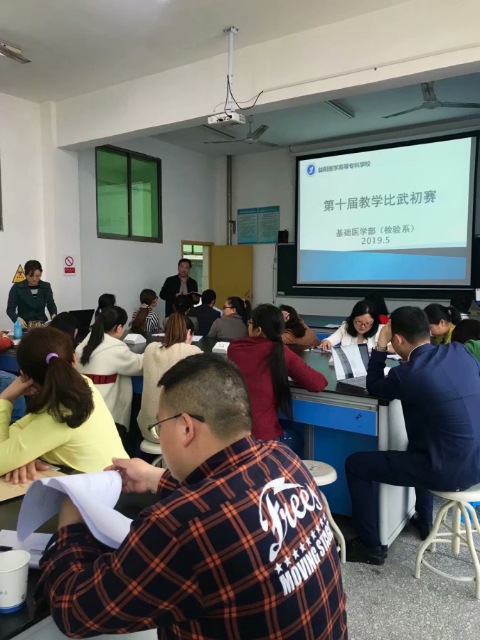 为贯彻落实《关于举办2019年湖南省职业院校技能竞赛教师职业能力比赛的通知》(湘教通〔2019〕78号)、益阳医专校教字〔2019〕04号“关于举办学校第十届教学比武暨技能竞赛教师职业能力比赛的通知”和校教字〔2019〕7 号“关于举办2019年校级教师职业能力课堂教学比赛暨学校第十届教学比武活动的通知”文件精神, 2019年5月8日下午2:30分,基础医学部(检验系))教师职业能力课堂教学比赛暨学校第十届教学比武活动在病原实验室(一)拉开序幕,比赛由刘伏祥主任主持,益阳医学高等专科学校教务处长傅学红全程参与指导,系部全体教职员工参与观摩学习,。