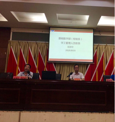为引导新生尽快融入大学生活,增加同学们对医学检验技术专业领域的了解,2018年9月3日下午2:30分,基础医学部与检验系面向2018级新生,在学术报告厅开展了新生入学教育活动,系领导、专业教师及辅导员参加了此次活动。