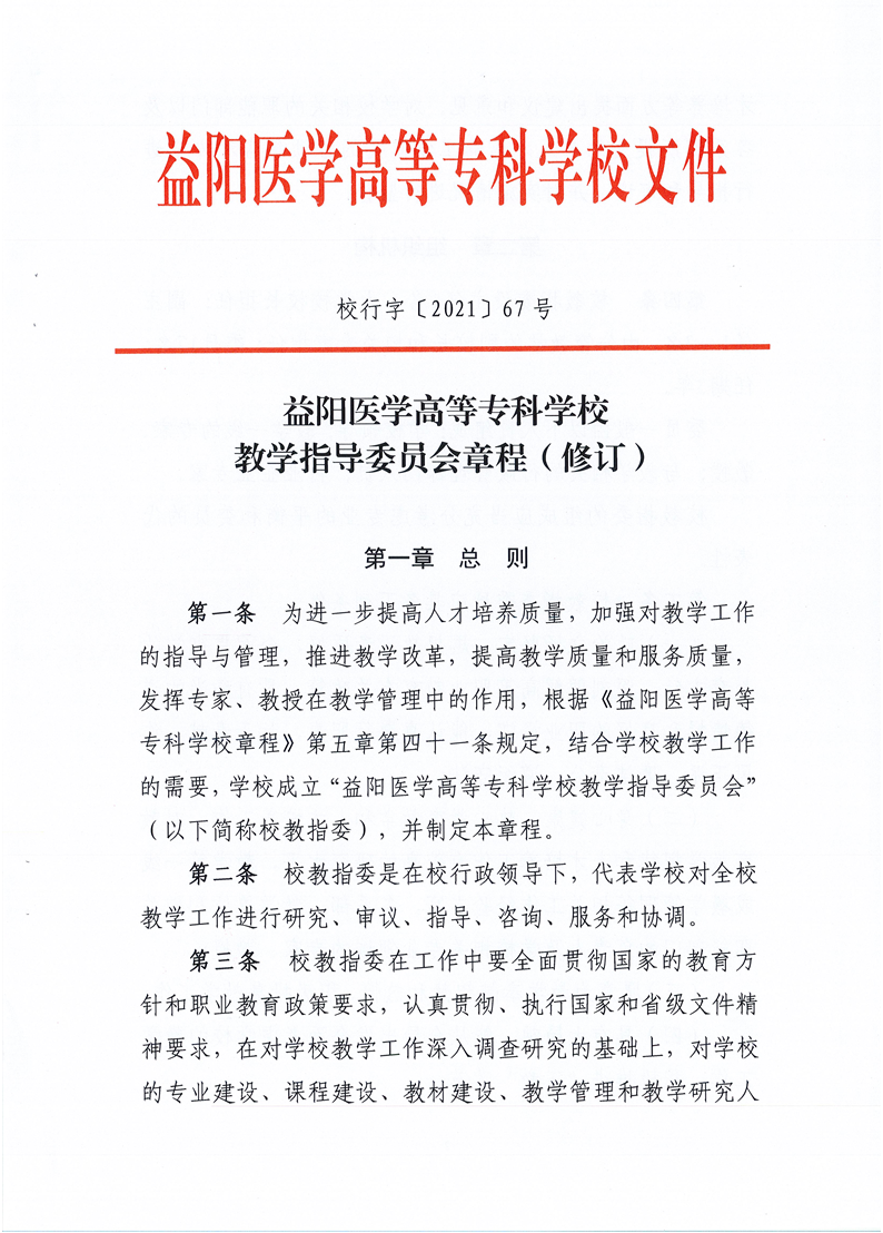 校行字〔2021〕67号教学指导委员会章程(修订)