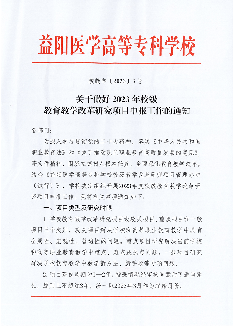 关于做好2323年校级教育教学改革研究项目申报工作的通知