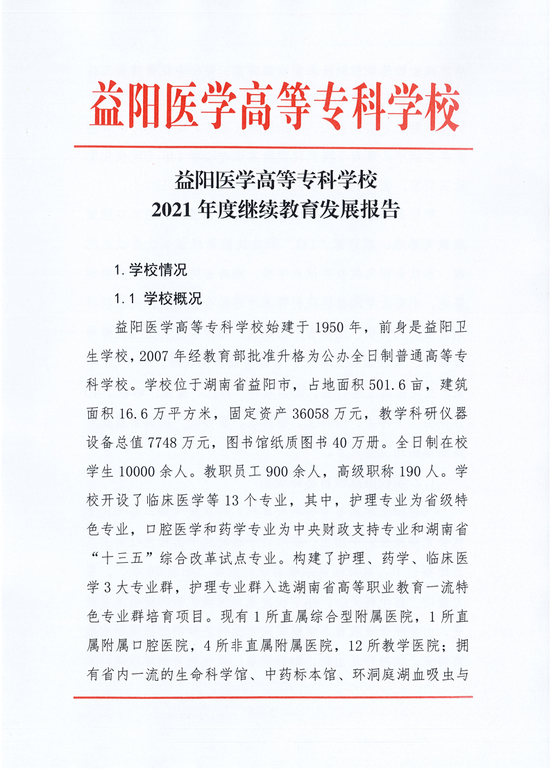 益阳医学高等专科学校2021年度继续教育发展报告