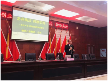 针对当下大学生身处象牙塔,在校期间只注重专业知识而忽略其他人文、市场等方面的学习,为了提前让学生接触所学专业,了解当下口腔或医学的发展方向,同时解决学生的心理迷茫期,益阳医专口腔医学系及招生就业处邀请德皓口腔集团董事长毛斌先生为益阳医专口腔系大二学生开展了题为"志存高远,脚踏实地"的创新创业就业指导专题讲座。