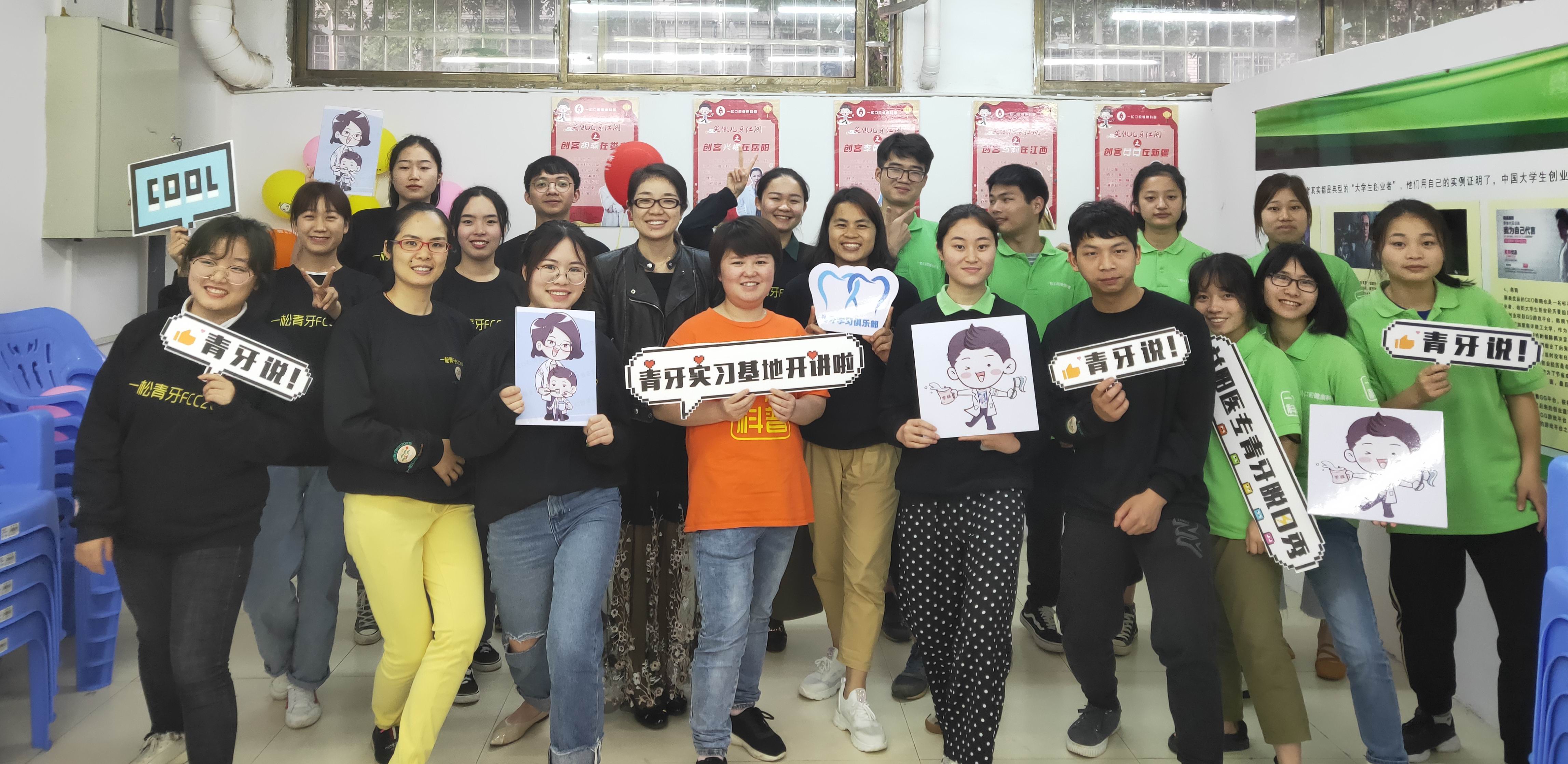 2019年5月19日,一年一度的一松口腔健康科普年会在大学生创业创新基地举行,这同时也是益阳医专口腔社第一届科普内训赛、青牙脱口秀,莅临现场的老师有湖南的曹玉林、甘涛、李婷、王佳陵、江西代表江莉、广西代表吴小萍,以及活动口腔社协干及青牙全体成员。