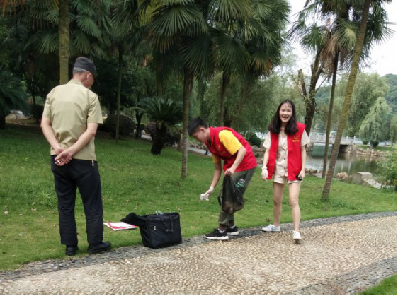 志愿者们发放宣传资料,为大家解读吸烟、吸毒的危害和有关防溺水的相关知识,得到了大家的关注。有的群众会主动向志愿者们咨询相关知识,参与活动的热情高。同时志愿者们在秀峰公园内当起清扫义工,身穿红马甲的他们吸引了在公园内游人的目光,得到了人们的一片赞赏。
