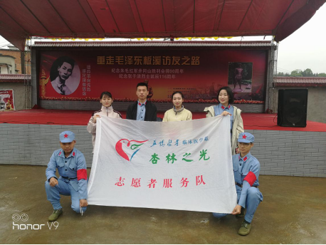 4月5日,时逢清明。由桃江县鸬鹚渡镇人民政府主办的“重走毛泽东板溪访友之路、纪念张子清烈士诞辰116周年”大型活动在绵绵细雨中如期举行。我校临床医学系“杏林之光”志愿者服务队应邀参加此次活动。