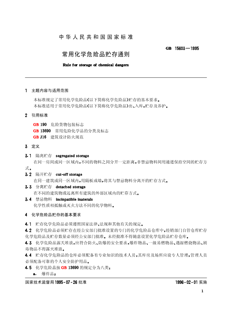 常用危险化学品贮存通则
