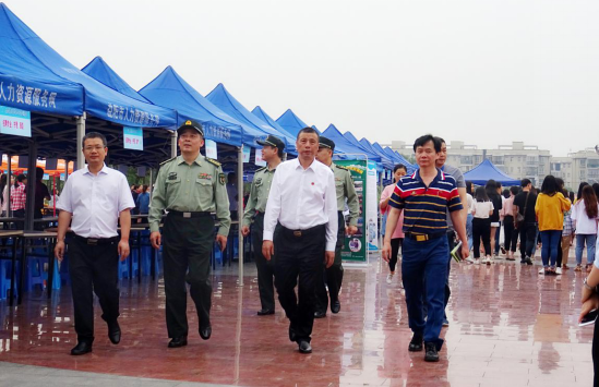 党委书记周逢春(右二)陪同市军分区领导视察供需见面会