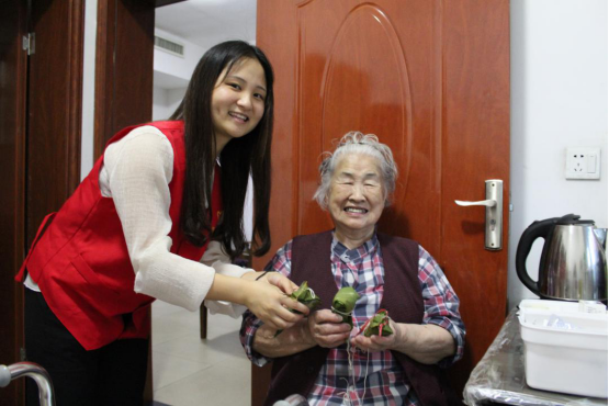 活动结束后,护理系志愿队派出18名志愿者将送展参赛的300多个粽子分别送到了重阳老人院和金岭茶业残疾人托养中心,在端午前夕,为老人和残疾人士送上医专学子的一份爱心。