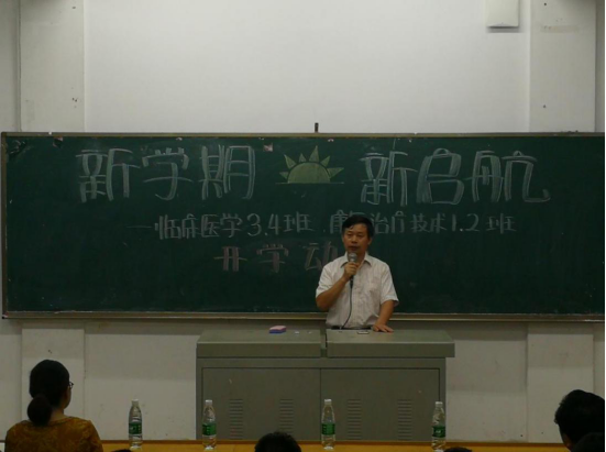 8月30日晚7点,临床医学系“1+2”人才培养模式学生动员大会在三实训楼101室召开。副校长姚腊初、系主任兼附属医院副院长刘毅、党总支书记包再梅、系部全体工作人员及临床医学3.4班、康复治疗技术1.2班的全体同学200余人参加。会议由系副主任文勇主持。