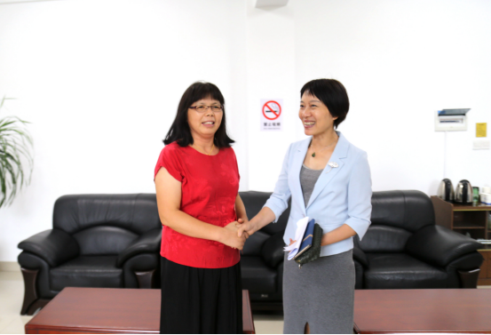 刘时贵(右)与易淑明亲切交流