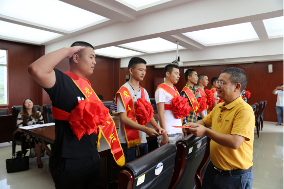 即将入伍的新兵与师长们亲切交谈,依依作别。(撰稿:王红云 审核:王伟俊)