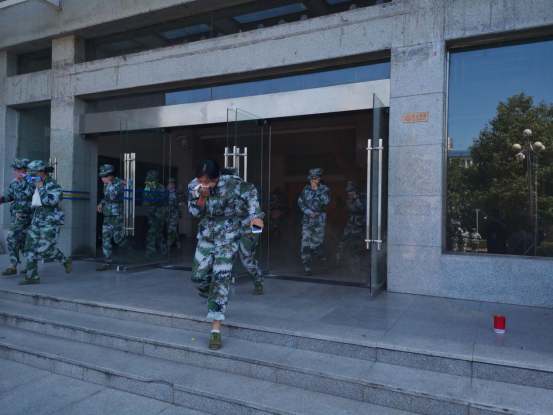 为加强新生消防安全意识,提高学生抗击突发事件的能力,9月8日下午,益阳医专组织军训新生进行消防疏散演练。