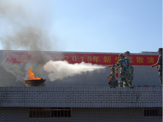 随后,军训新生在田径场听取消防知识讲座。授课老师联系实际讲解了防火知识和逃生技巧,演示了常见的灭火器以及防毒面具的使用方法。现场还指导师生进行实战,学习使用灭火器灭火。
