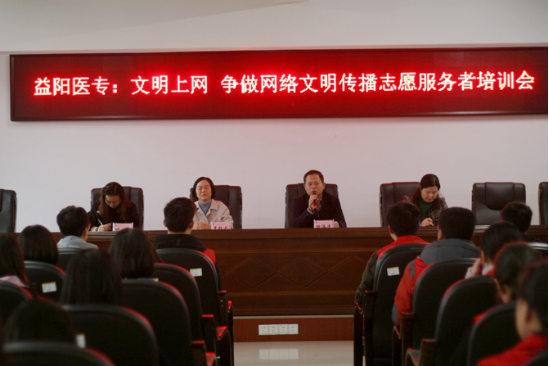 11月19日,“益阳医专:文明上网 争做网络文明传播志愿服务者培训会”在行政楼408会议室召开。副校长田海清出席并讲话,杏林之光志愿服务队40多位骨干成员参加培训。