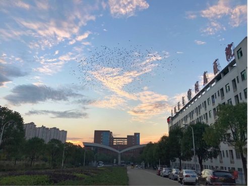 2015级高职护理4班熊津拍摄的《一群鸟儿飞过》