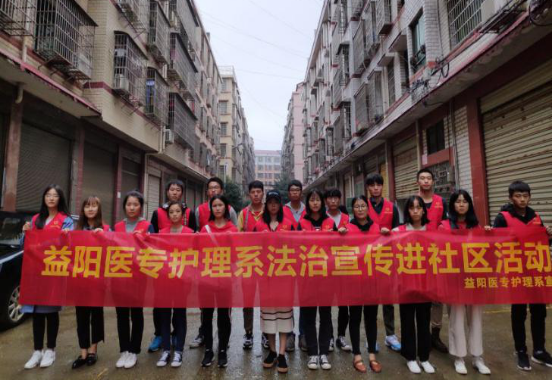 近日,护理系组织20多名学生志愿者来到赫山区乌金小区开展“学法守法,共创美好生活”法治宣传教育活动。