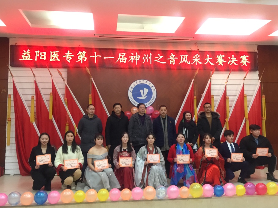 2019年1月4日中午,益阳医专第十一届神州之音风采大赛在学术报告厅隆重举行。党委委员、宣传统战部部长贾平,护理系主任李镇麟、党总支书记陈西玲,临床医学系党总支书记包再梅,基础医学部(检验系)副主任阳泽华,学工处教育管理科科长肖学及辅导员、班主任代表出席了颁奖仪式。