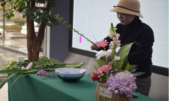 在花艺老师的指导下,大家认真地进行选材搭配加工,以高涨的热情和丰富的创意完成了自己的插花作品。活动结束后,女职工们把自己的作品摆放在作业台上互相欣赏、交流心得、传递快乐与幸福。大家纷纷表示:通过此次活动学习了花艺知识,体验了插花艺术,增添了生活乐趣,收获了一个既充实又开心的节日。