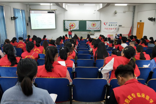 4月20-21日,临床医学系“杏林之光”志愿服务队联合益阳市红十字会开展急救知识培训考核。100名学生志愿者参加培训,97人通过考核获得初级救护员培训证书。