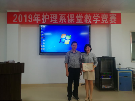 护理系主任李镇麟为获得一等奖的选手颁奖
