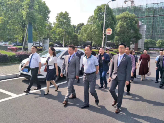 卢世刚副校长(前排右二)陪同考察团参观校园