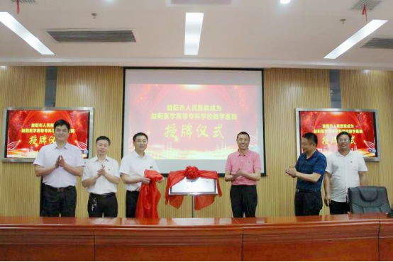 7月4日,益阳医学高等专科学校教学医院揭牌仪式在益阳市人民医院门急诊楼会议室举行。党委书记周逢春、益阳市人民医院院长邢协望代表校院双方交换合作协议书,并为益阳医学高等专科学校教学医院揭牌。副校长姚腊初、临床医学系主任刘毅以及资阳区卫健党委书记、 局长王士亮等出席揭牌仪式。仪式由益阳市人民医院副院长郝书华主持。