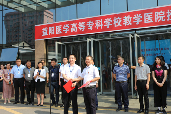 7月10日,益阳医学高等专科学校教学医院揭牌仪式在安化县人民医院举行。校长刘柏炎、安化县人民政府副县长胡能华共同为益阳医学高等专科学校教学医院揭牌。副校长姚腊初、教务处处长傅学红、临床医学系主任刘毅、党总支书记包再梅,以及安化县卫生健康局局长熊栋才、安化县政府办副主任肖刚强、安化县人民医院院长周勤等出席揭牌仪式。仪式由安化县人民医院党委书记、副院长喻新强主持。
