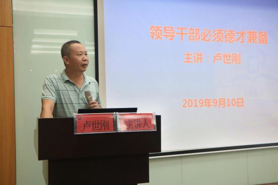 卢世刚引经据典,先从“西游记”和“三国演义”等历史典故中引出团队管理干部的重要性和干部德才兼备的必要性,然后他从“德”的四个方面——品质、品格、品行、品味以及“才”的六个方面——学习力、理解力、决策力、执行力、控制力、影响力着重阐述了“德才兼备”的内涵,既有高度、深度、广度,又风趣幽默,特接地气。他指出,管理干部必须以德为先,否则,理想信念不坚定,政治上不合格、品德不端的人成为管理干部,其职务越高、平台越大,危害则越大;但是,培养选拔干部强调德的重要性,绝不是忽视才,领导干部要履行好责任,必须有一定的能力作支撑,一个干部如果有德无才,即使有干事创业的愿望和勤勤肯肯的工作态度,但始终难以托付重任,德与才须相互依存、相得益彰,管理干部只有德才兼备,方堪重任