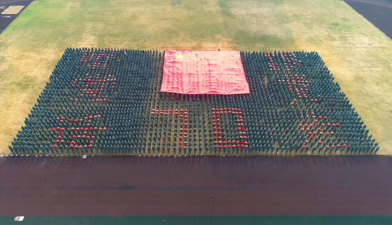 周逢春一声令下,军训会操正式开始,59个连队踏着坚定的步伐、喊着嘹亮的口号依次走过主席台接受检阅,一展多日来的军训成果。随后特殊方队的同学进行了擒敌拳、匕首操、功夫扇、拳术等表演。汇演最后,当全体新生为庆祝祖国母亲70岁生日,共同摆出”益阳医专、不忘初心、牢记使命、祖国万岁”等人形字时,全场掌声雷动,经久不息。